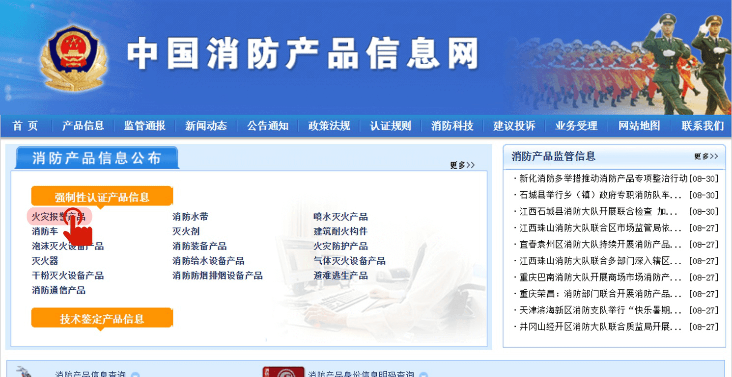 Klik pada produk yang relevan untuk memeriksa sertifikat 3C terbaru dan data laporan inspeksi, seperti klik "Home Fire Alarm Controller".