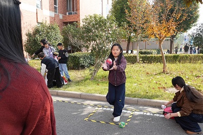 隨后,活動進(jìn)入輕松有趣的親子游戲環(huán)節(jié)。在公司大樓門口,《套圈》《平衡小能手》《文明飛行棋》《信任盲行》四個游戲區(qū)域同步開展。大人和孩子齊上陣,在妙趣橫生的互動中協(xié)同合作,加油聲、歡呼聲、笑語聲此起彼伏,現(xiàn)場化身為一片歡樂的海洋?!短兹Α窋偽蝗藲獗?,彩圈紛飛,喝彩不斷,成為活動現(xiàn)場最火爆的風(fēng)景線;《平衡小能手》區(qū)域,孩子們金雞獨立,目光緊鎖弧線,在晃動中精準(zhǔn)捕捉來球,贏得滿場喝彩;巨型《文明飛行棋》賽場趣味盎然,孩子們擲出骰子,因文明行為前進(jìn),因不良習(xí)慣后退,在游戲中生動實踐了行為規(guī)范;《信任盲行》考驗極致信任,蒙眼者無畏前行,指引者口令清晰,在障礙中攜手共進(jìn),完美抵達(dá)。